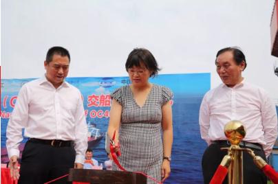 ▲ 香港明華船務有限公司商務部總經理范愉女士為“明通”輪砍纜