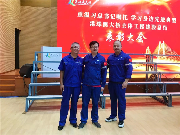 11月12號下午,港珠澳大橋主體工程總結表彰大會在港珠澳大橋管理局禮堂舉行。大會回顧了港珠澳大橋建設過程中的各個重要時刻,表彰了工程建設先進個人并現場頒獎。武船重工股份黨委副書記、總經理吳躍波,總工程師阮家順,副總經理吳濤,和公司員工陳嘉明、王中立、向晉華、易大勇7人分別榮獲了“十大領軍人物”“十大功臣”“十大工匠”“建設標兵”榮譽稱號。