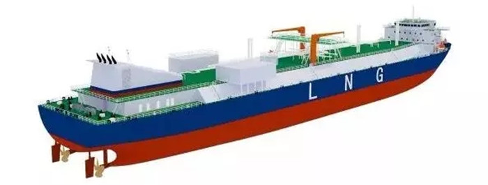 ▲兩型進(jìn)江薄膜型LNG運(yùn)輸船效果圖