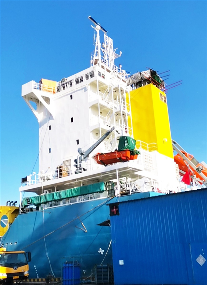 據(jù)悉,700TEU多用途集裝箱船-2 船計劃于本月底交付。為保證產(chǎn)品進(jìn)度,生產(chǎn)運(yùn)行部24小時駐扎碼頭緊盯生產(chǎn)。截至今天下午2點,該船的桅桿和煙筒已經(jīng)重新安裝完成,比原定恢復(fù)計劃提前2天。