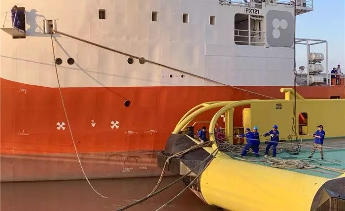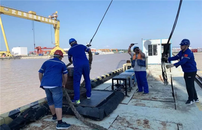 為確保船舶靠泊工作安全、有序進行,武船南通順融重工在移泊前做了一系列準備工作:一是對2號碼頭內檔進行了近一個月持續清淤挖泥的工作;二是派專人時時記錄潮汐變化,找準最佳移泊時間點;三是制定移泊方案,反復與交船隊、拖輪公司協商討論;四是對全體帶纜、解纜人員進行各崗位安全培訓、風險辨識防范及技能培訓,為移泊工作奠定堅實基礎。