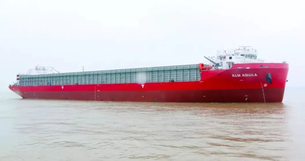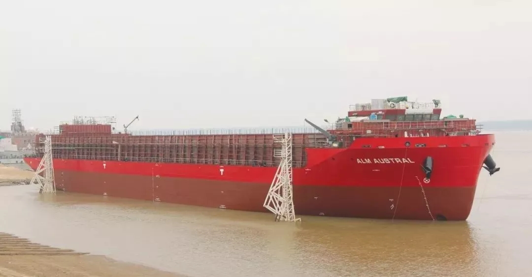 ▲新型13000噸甲板運(yùn)輸船2號(hào)船離廠