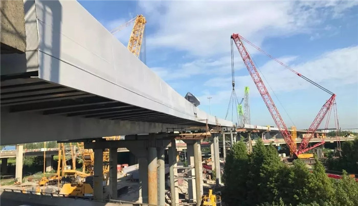 8月27日上午8時,由武船重工股份承建的浙江省杭金衢高速紅墾樞紐F匝道5號橋應急改建工程(紅墾橋)最后一節鋼箱梁成功安裝,全橋順利合龍,標志著該項目主體工程已圓滿完成。