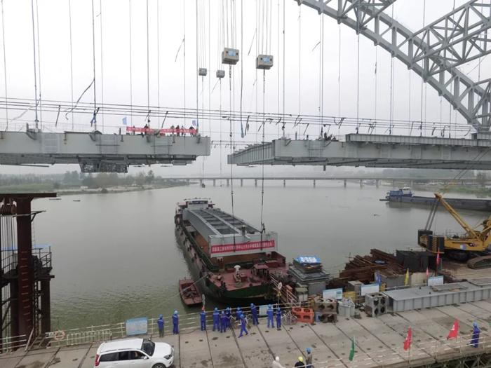 8月31日,隨著蘇嶺山大橋最后一片主梁節(jié)段吊裝到位,由武船重工股份承建的蘇嶺山大橋主橋成功實(shí)現(xiàn)合龍,兌現(xiàn)了武船集團(tuán)對(duì)襄陽(yáng)市人民和業(yè)主的承諾。武船重工股份副總經(jīng)理、工會(huì)主席姜海松在施工現(xiàn)場(chǎng)全程組織指導(dǎo)主橋節(jié)段吊裝。