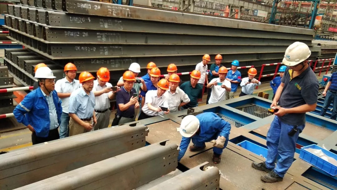 與會專家和領導查看了面板單元件生產現場和產品質量狀況,聽取了《棋盤洲鋼箱梁制造加工焊接工藝評定》、《首制件面板單元件施工總結》和《面板U肋焊縫質量檢測與驗收標準》的匯報,審閱了相關技術文件和檢測資料,經討論認為,武船重工股份提供的技術資料齊全,檢測數據可信,符合評審要求。面板單元件制造施工準備充分,質量保證體系完整,工藝裝備安全可靠,工藝方案可行,在科學管理和技術創新方面做了積極探索,面板單元件制造滿足設計及相關規范要求。大橋施工質量得到與會專家和領導們的一致認可和高度評價,可進行后續面板單元件批量生產制造。