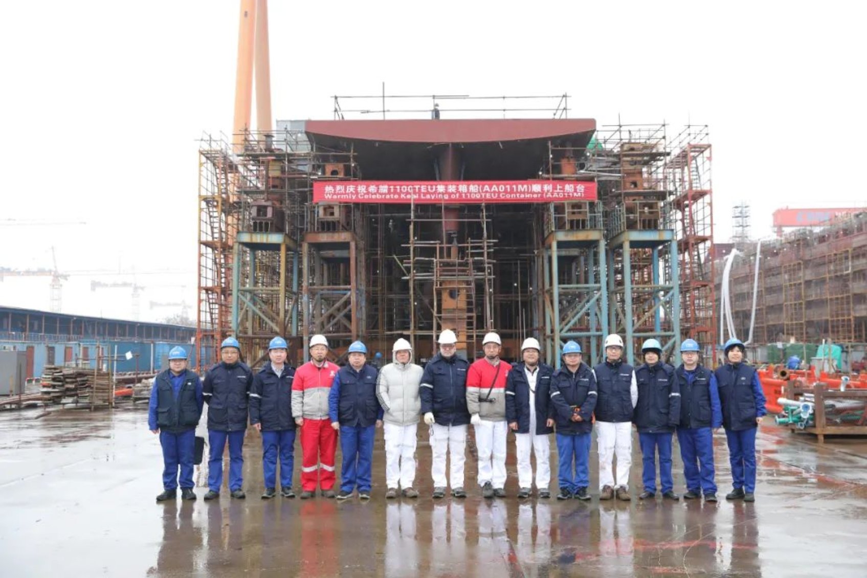 12月18日,由中國船舶集團武昌造船承建的希臘1100TEU集裝箱船1號船 順利完成上船臺節(jié)點!