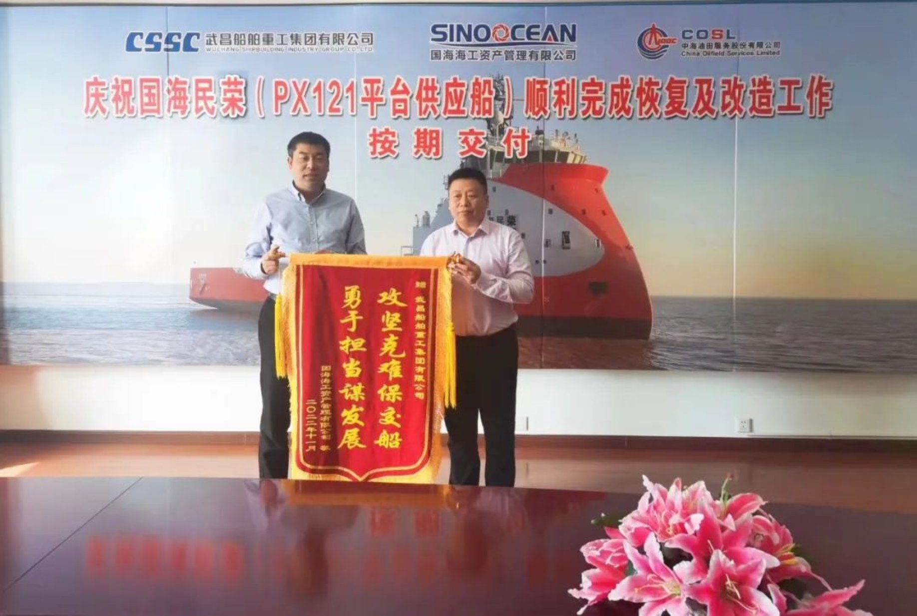 2022年11月7日,由中國(guó)船舶武船建造的PX121H型平臺(tái)供應(yīng)船“國(guó)海民榮”輪,在武船南通順融重工碼頭順利交付。本船是4艘PX121H型平臺(tái)供應(yīng)船的最后一艘,至此武船成功盤活該型產(chǎn)品全部海工資產(chǎn)。