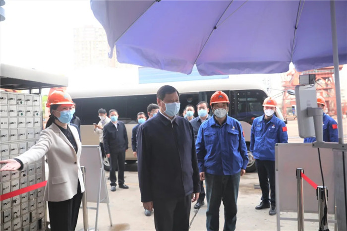 應(yīng)勇一下車便來(lái)到武船生產(chǎn)車間,登上作業(yè)平臺(tái),深入一線實(shí)地考察企業(yè)復(fù)工復(fù)產(chǎn)情況。陳?較蛩?詳細(xì)介紹了公司產(chǎn)業(yè)布局、生產(chǎn)能力、重點(diǎn)產(chǎn)品,歷史沿革以及當(dāng)前在制重點(diǎn)產(chǎn)品生產(chǎn)建造情況和武船參加武漢市社區(qū)疫情防控工作情況。在目前國(guó)內(nèi)外防疫形勢(shì)依然嚴(yán)峻的情況下,公司為了有序推進(jìn)武漢、青島兩大基地復(fù)工復(fù)產(chǎn),積極籌措防疫物資,建立防控工作機(jī)制,設(shè)立隔離觀察區(qū)域,消殺工作生活場(chǎng)所,集中管理返崗人員,開(kāi)展安全生產(chǎn)檢查,并于近日得到主管部門批復(fù)后順利復(fù)工。