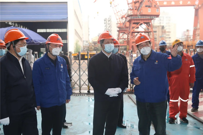 3月25日,湖北省委書(shū)記應(yīng)勇到武船集團(tuán)調(diào)研復(fù)工復(fù)產(chǎn)、加快發(fā)展情況。省委常委、武漢市委書(shū)記王忠林,副省長(zhǎng)曹廣晶及省委、省政府有關(guān)部門負(fù)責(zé)同志參加調(diào)研。武船集團(tuán)黨委書(shū)記、董事長(zhǎng)陳?劍?黨委副書(shū)記、總經(jīng)理梁師清及武船集團(tuán)有關(guān)部門負(fù)責(zé)人陪同調(diào)研。