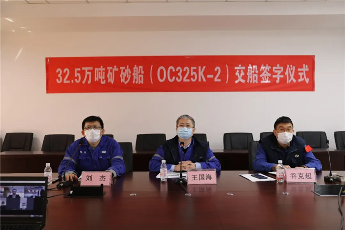 4月15日,中國船舶武船集團(tuán)北船重工為工銀金融租賃有限公司和招商局能源運(yùn)輸股份有限公司建造的32.5萬噸礦砂船“ORE FUZHOU”輪順利交付,這是繼北船重工2月份剛剛交付首制32.5萬噸礦砂船“ORE YANTAI”輪之后,交付的同型姊妹船。該船在延續(xù)首制船電簽的基礎(chǔ)上,通過視頻會議形式舉辦交船簽字儀式,武船集團(tuán)北船重工董事長王國海、工銀租賃航運(yùn)金融事業(yè)部執(zhí)行總經(jīng)理郭芳萌、招商輪船副總經(jīng)理丁磊先后講話并就后續(xù)產(chǎn)品建造情況進(jìn)行了座談交流。