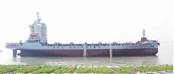 4月3日,由中國船舶集團武昌造船建造的1100TEU集裝箱船4號船 順利下水!標志著武昌造船為CA SHIPPING建造的1100TEU集裝箱船均完成船臺建造工作!該型船1號船已順利交付,2號船正在海試階段,3號船正在系泊試驗階段。
