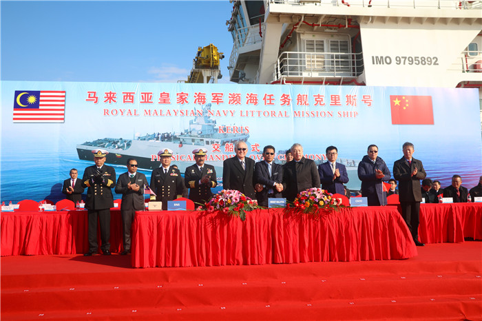 12月31日,中國船舶集團有限公司所屬武昌船舶重工集團有限公司為馬來西亞海軍建造的瀕海任務艦首艦在中國船舶武船集團江蘇啟東基地交付。