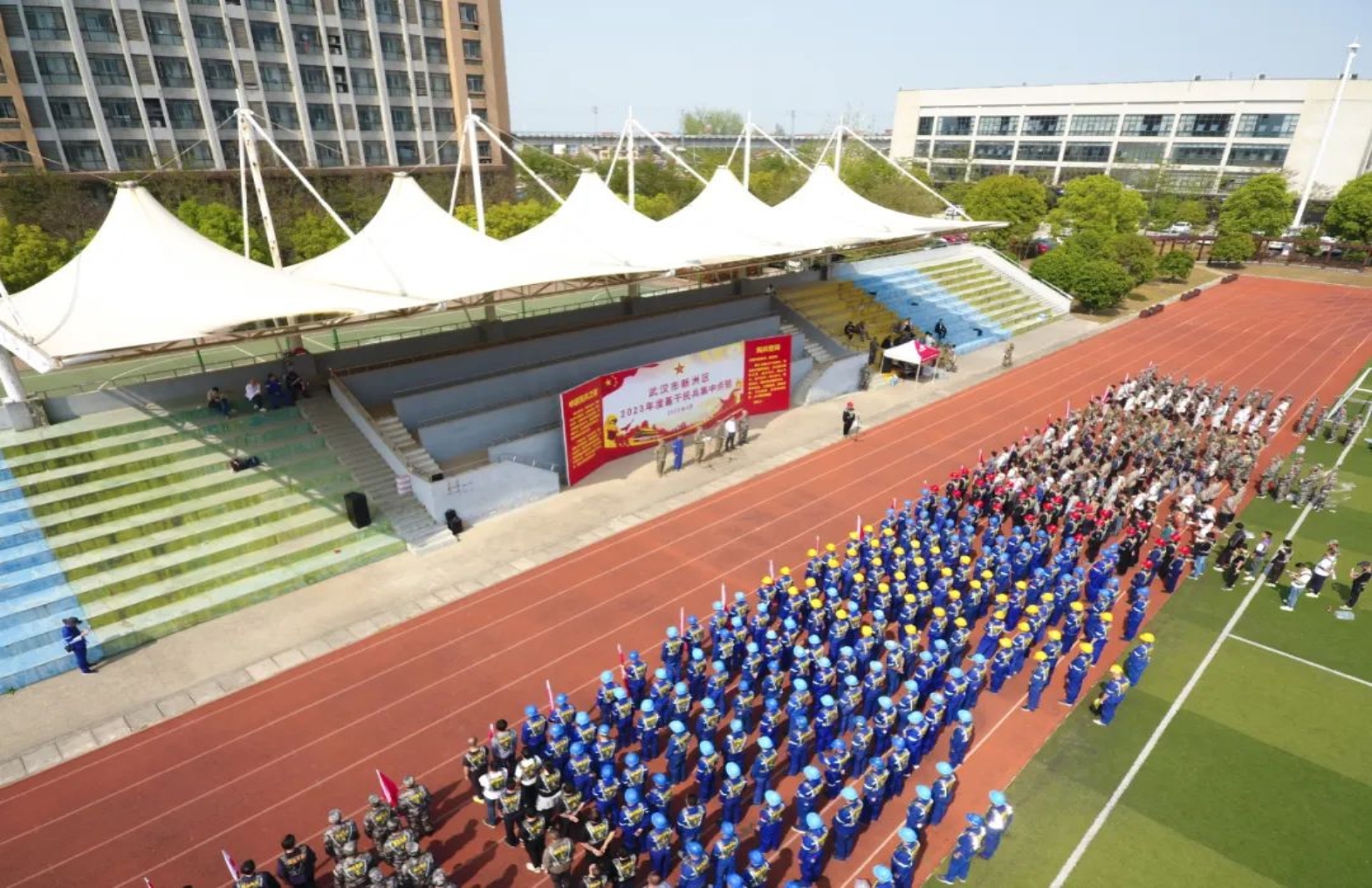 4月10日,風(fēng)和日麗,軍旗飄揚(yáng),武漢市新洲區(qū)基干民兵點(diǎn)驗(yàn)大會在中國船舶集團(tuán)武昌造船體育場隆重舉行。新洲區(qū)委常委、區(qū)人武部政委陳勇、區(qū)人武部部長馮俊明、區(qū)人民政府辦黨組成員高擁軍、相關(guān)街鎮(zhèn)及高校武裝部長、武昌造船安保部有關(guān)負(fù)責(zé)人出席本次點(diǎn)驗(yàn)大會。同時參加點(diǎn)驗(yàn)大會的還有雙柳片區(qū)基干民兵 670名,其中武昌造船基干民兵 200 名。