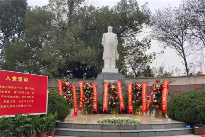 △全體黨員瞻仰毛澤東同志雕像表達緬懷之情