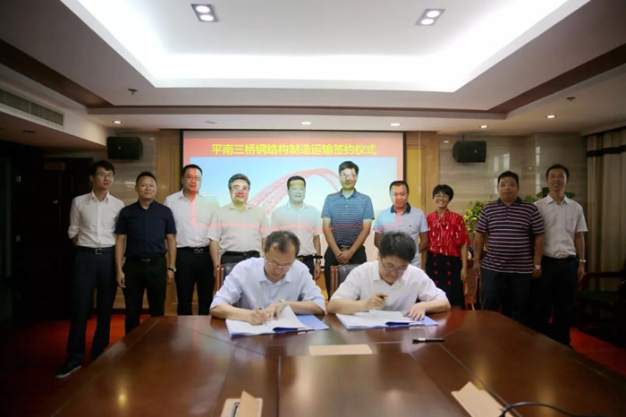 5月24日,武船重工股份與廣西路橋集團公司簽訂平南三橋鋼結構加工合同,武船重工董事長、黨委書記楊宏剛,常務副總經理李立明,副總經理蔡峰出席簽字儀式,總經理助理杜民代表公司在合同書上簽字。