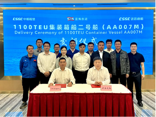 4月25日,由中國船舶集團(tuán)武昌造船為CA SHIPPING建造的 1100TEU集裝箱船2號(hào)船 提前交付!該船的提前交付是武昌造船步入“快車道”,跑出“加速度”的成果體現(xiàn),展現(xiàn)了公司在設(shè)計(jì)和建造方面的綜合實(shí)力,也為武昌造船建廠90周年獻(xiàn)上的一份沉甸甸的賀禮!武昌造船、亞海航運(yùn)、NK船級(jí)社、哥倫比亞船舶管理公司等相關(guān)單位領(lǐng)導(dǎo)和嘉賓共同見證交付儀式。